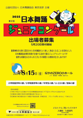 東京支部では今年も22歳以下を対象とした日本舞踊ジュニアコンクールを開催いたします。