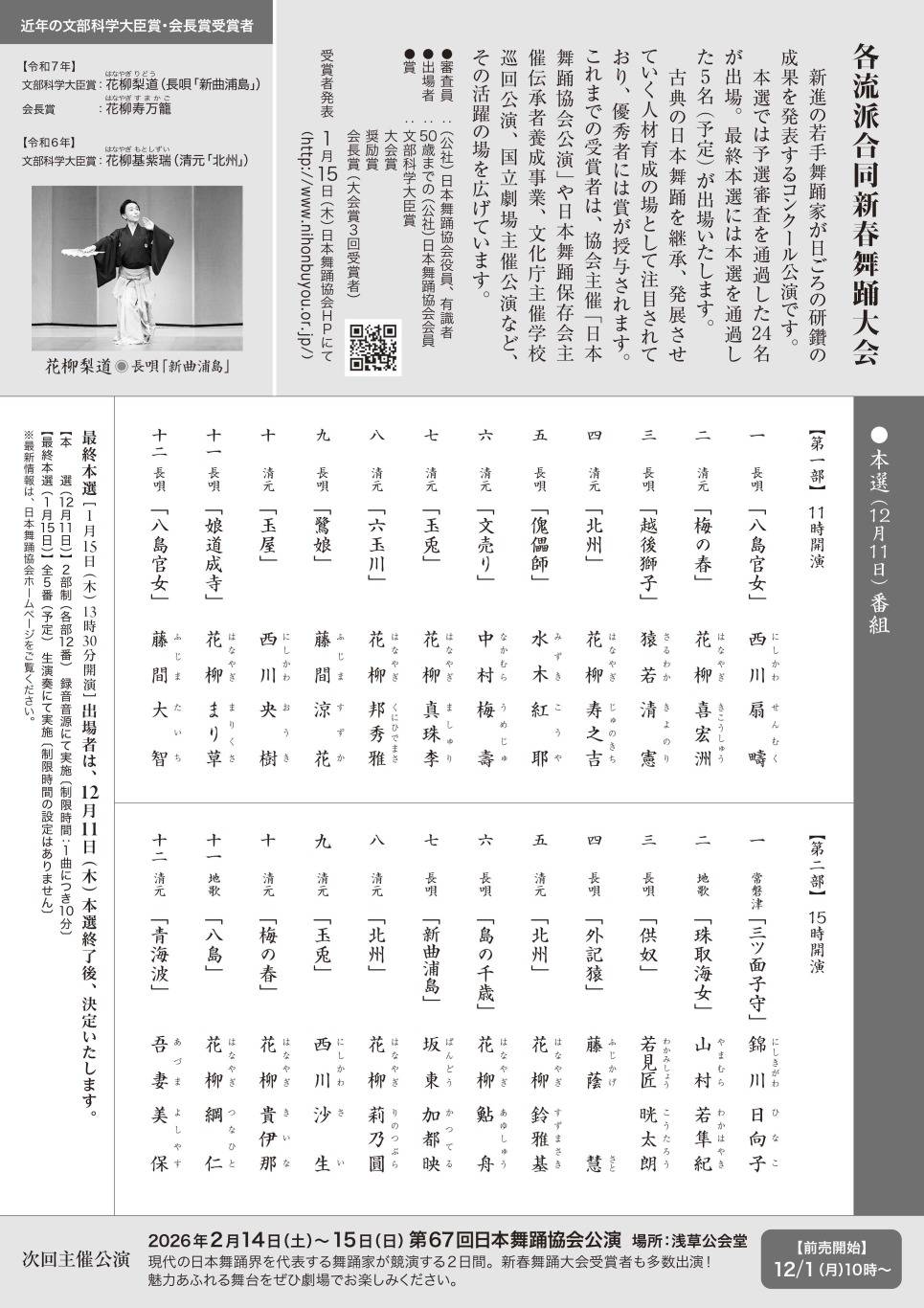 - 2026年1月15日 (木) 最終本選(公開形式・実演審査)